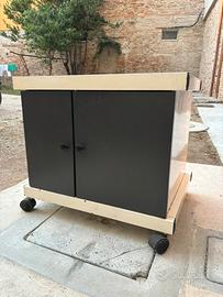Armadietto totalmente in metallo con porte con calamite e ruote. Il telaio è in tubolare mentre le pareti in lamierino. Stato ottimo non perfetto di vernice ma qualita costruttiva molto alta, molto solido.