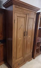 Il mobile presenta ante con decorazioni intarsiate, dettagli lavorati a mano e maniglie in stile tradizionale, nella parte inferiore sono presenti due pratici cassetti ideali per piccoli oggetti o biancheria.