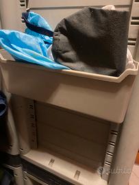 Armadietto resina , e 2 mobiletti , con ante e scomparti , da esterno, balcone, campeggio .