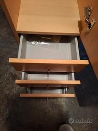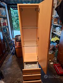 Vendo armadietto pensile in legno per bagno, ottime condizioni, tre ripiani in vetro e tre cassetti a chiusura automatica, misure cm larghezza 35, profondità 37, altezza 158. Nella parte posteriore ci sono i ganci per appenderlo al muro.