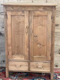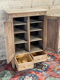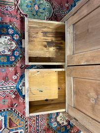 Piccolo armadietto della prima metà del 1900, in faggio e abete. In ordine per quanto riguarda la falegnameria e strutturalmente… Necessita di trattamento e finitura. In buone condizioni, ma non restaurato.