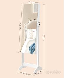 Molto spazio per i gioielli: 108 supporti e 36 fori per orecchini, 36 ganci per collane, 39 slot per anelli, 1 asta per bracciali, 4 ripiani con un ripiano alto per cosmetici di grandi dimensioni; ideale per riporre gioielli senza disordine.