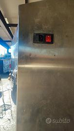 Si tratta di un armadio in acciaio inox a due ante, un tipo di mobile spesso utilizzato in ambienti professionali come cucine, laboratori o studi medici per la sua resistenza e facilità di igienizzazione.
