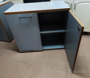 Armadietto Ufficio in legno con ripiano interno in acciaio, colore grigio. Disponibili 2 pezzi.