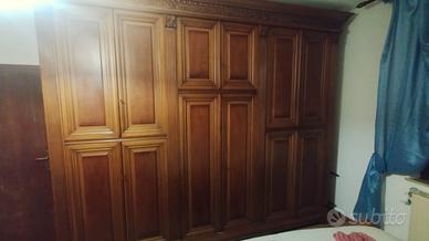 vendesi per cambio arredamento armadio a 12 ante, con all'interno cassettiera ripiani e barre appendiabiti. in abbinato testiera letto matrimoniale. tutto in legno massello, eccellente fattura e ottime condizioni