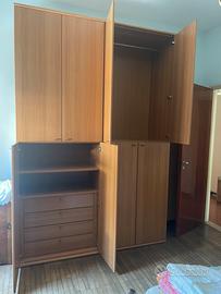 Armadio in perfette condizioni con 4 vani a doppia anta, ripiani e aste appendiabiti e cassettiera interna.