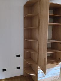 Vendiamo armadio 2 ante con 4 cassetti esterni, 1 palo porta appendiabiti, 3 ripiani e libreria esterna.