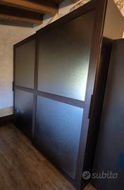 Vendo armadio scorrevole 2 ante,con cassettiera all'interno colore wenge' scuro e specchio lavorato opaco bronzo come da foto Misure L.270xP.60xH.2,50 NO SPEDIZIONE SMONTAGGIO E TRASPORTO A CURA DELL'ACQUIRENTE