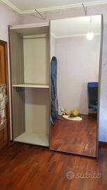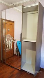 Armadio 2 ante scorrevoli specchio. Marca mondo convenienza. Dimensioni: larghezza 184 cm,profondità 61 cm, altezza 252 cm. Colore rovere grigio con interni chiari. Già smontato, da ritirare a casa terzo piano.
