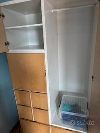 Vendo armadio come da foto bianco con le porte marrone chiaro. Alto 200cm largezza 110cm profondita 60 cm. Due cassettoni in basso scorrevoli e indipendenti, 4 cassettoni piccoli. Buono stato. Ritiro a Luino.