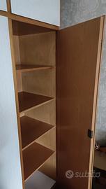 L'armadio è suddiviso in 6 ante, 3 grandi in basso (una con cassettiera) e 3 ante più piccole con un ripiano all'interno, con chiavi
