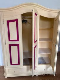 Armadio in legno 3 ante pitturato come da foto con profili fucsia per cameretta di una bimba ma facilmente ripitturabile. Vendo causa trasloco. Ritiro urgente