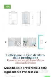 Vendo armadio in legno, tre ante bianco, nuovissimo ancora in imballaggio originale, per misure errate.
