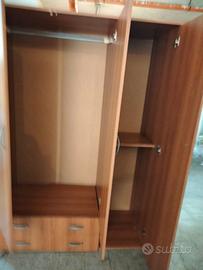 Armadio 3 ante con cassettiera e appendi abiti. Altezza 1,75, larghezza 1,20, profondità 0,50