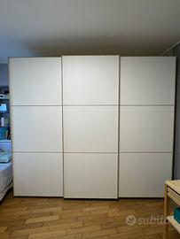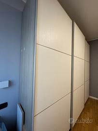 Vendo armadio a tre ante scorrevoli in ottime condizioni, come nuovo. Ha un’altezza di 2,45 metri, una profondità di 60 centimetri e una lunghezza di 2,70 metri. All’interno, offre 10 ripiani, una cassettiera e due aste appendiabiti. Acquistato nel 2023 a 1000€, lo vendo a 500€ perché non lo utilizzo più. Smontaggio e trasporto sono a carico dell’acquirente.