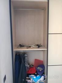 Armadio con 3 ante scorrevoli in buono stato. Struttura marrone e vetri panna. Misure: 2,69x0,55x2,46