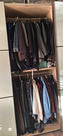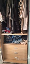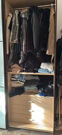 h 240 cm larghezza 270 cm profondità 60 cm 6 cassetti larghi 2 ripiani ampi 4 comparti con asta per stampelle perfetto a parte qualche piccolo difetto sui lati delle ante (sul legno) ante in vetro color ghiaccio Smontaggio e ritiro da parte dell'acquirente Zona Torre Maura (Roma)