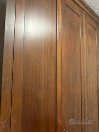 Armadio 4 ante in legno massello tinta noce . Dimensioni h 262 cm , l 188 cm e profondità 60 cm.