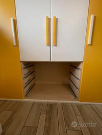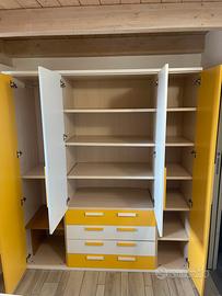 Bellissimo e funzionale Armadio 4 ante e 4 cassettiere e 10 ripiani massicci in perfette condizioni, colore bianco e giallo usato pochissimo , ottimo legno resistente prodotto da falegnameria su misura x adattarlo alla camera.