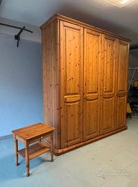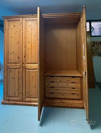 robusto armadio 4 ante con 4 cassetti e 2 ripiani in legno di pino (no tarli).