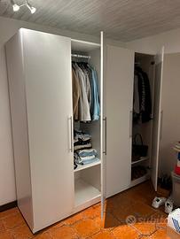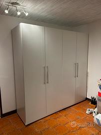 Due mesi di vita, come nuovo, presenta solo un lieve graffio visibile in controluce,altrimenti si nota poco, completo di maniglie , ripiani e bastoni appendi abiti. Altezza 201 cm, profondità 60 cm, larghezza 200.
