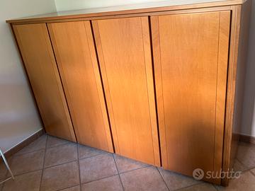 Armadio 4 ante diviso in due parti, spazioso e con asta appendi abiti. Misure: Profondità 63 cm Altezza 134 cm Larghezza 208 cm