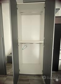 Armadio nuovo 4 ante, due centrali a specchio, grigio effetto legno. cm. 161 x 52 x 236 . Ritiro a domicilio trasporto a carico dell’ acquirente.