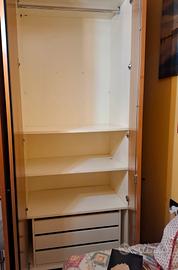 armadio in legno noce con interno color panna...cassettiera...con vari ripiani e barre appendiabiti misure 205x260 smontaggio e trasporto a cura dell'acquirente acquirente
