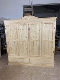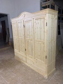 Vendo armadio 4 porte 2 cassetti con arco in abete massello grezzo non verniciato misure L210 H215 P55 di nostra produzione