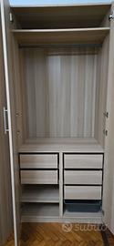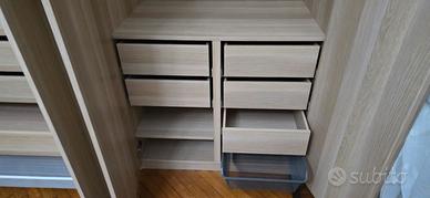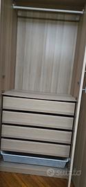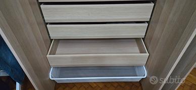Vendo per inutilizzo e acquisto di uno più grande, 4 ante, 4 cassetti grandi più uno retato da un lato e 5 piccoli e uno retato dall'altra. Nella parte alta asta da entrambi i lati per appendiabiti. Condizioni molto buone, vendesi a euro 100, trasporto a carico dell'acquirente. Per qualsiasi informazione contattare tranquillamente.