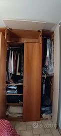 Bellissimo armadio 4 stagioni con cassettiera interna a 3 cassetti a sx e ripiani interni a dx e settimanile esterno con ripiani in vetro e faretto. Sopra alle ante a battente ci sono due vani con anta a ribalta per piumoni ,coperte valigie, tutto ciò che si utilizza meno spesso. I moduli a doppio battente sono da 1 mt ,l'anta laccata ,con doppi tubi per appendere è da 40 cm, la parte a giorno è 43 cm. Lunghezza totale cm 293 ,altezza 264 cm