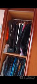Struttura interna una parte divisa con mensole e un'altra con appendi abiti