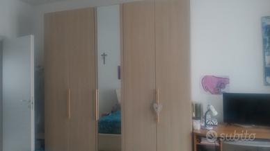 vendo armadio 5 ante con specchio centrale in ottime condizioni. all' interno ci sono 2 bastoni per appendere e togliere i ripiani che ho messo in più io.