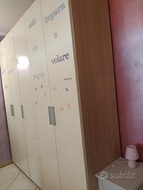 Si vende armadio misure Lunghezza 2,25 m, altezza 2,56 m, profondità 57 cm, in perfette condizioni causa trasloco. Due cassettiere interne, in alto posti per riporre scatole cambi indumenti estate/inverno. Si trova già smontato sabato 11 ottobre.