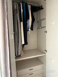 Vendo armadio a 5 ante in ottime condizioni color bianco opaco con appendiabiti saliscendi e cassettiera dal lato sinistro del armadio.