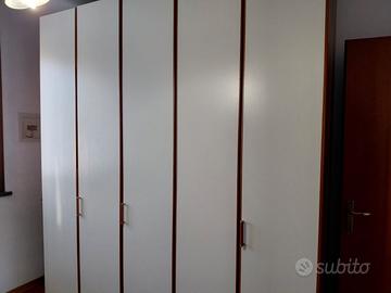 Armadio 5 ante in legno massello. Larghezza 230 cm, altezza 250 cm