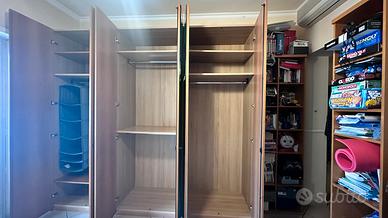 Armadio alto sei ante con specchi sull’esterno dei 4 sportli centrali: 275x63x250 h