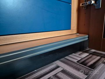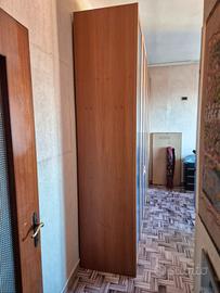 Vendo armadio a 6 ante battente in noce americano, pannello blu, di 308 cm di larghezza, 260 di altezza e 61 di profondità. Ha 3 ripiani di legno, cinque aste appendiabiti in legno, 1 cassettiera centrale, 1 specchio e guarnizioni doppie antipolvere per una perfetta chiusura delle ante. L’armadio, modello "ITER", fatto in Italia dalla ditta IMEL S.p.A. di Arosio (CO), è stato acquistato nel 1994 ad un prezzo di 5.250.000 lire, rimasto inusato praticamente da più di 20 anni, è come nuovo, non ha nessuna rottura o graffio evidente, al di fuori di un cinghiolo in cuoio di apertura di un’anta che si è strappato, facilmente sostituibile con uno nuovo.