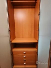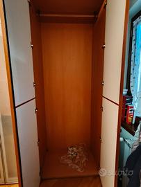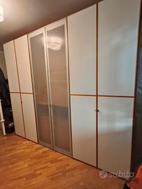 Armadio 6 ante di buonissima qualità. Usato ma in ottime condizioni (a parte qualche segno sulla cassettiera interna) Colore bianco con profili e fianchi color noce. Ante centrali in vetro satinato.