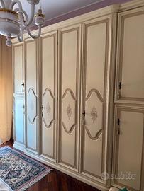 armadio classico in stile barocco/veneziano, laccato avorio con decorazioni floreali e modanature importanti, 6 ante