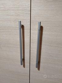 Bellissimo armadio 6 ante legno effetto rovere chiaro, maniglie alluminio opaco, ante a battente, la parte centrale sono state aggiunte 4 mensole.