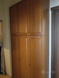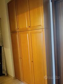 Armadio in legno color miele, dal design classico e funzionale. Il mobile è composto da più ante con pomelli, ideale per organizzare vestiti, biancheria o oggetti di casa. Struttura solida e capiente, adatta sia per camera da letto che per ingresso, corridoio o ripostiglio. Condizioni: usato ma in ottime condizioni, ben tenuto e senza difetti evidenti. Smontaggio a carico del venditore. Prezzo: 60€