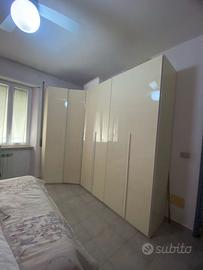 L’armadio è in buono stato, è fatto ad anglo con 6 ante, la sua parte più lunga è cm 190 poi c’è l’angolo con la porta da cm 40 all’interno sfrutta bene tutto l’angolo con ampia gabina, poi c’è il pezzo finale di cm 40 a corredo i due comodini. Essendo componibile si può girare a piacimento. Prezzo € 650 trattabile