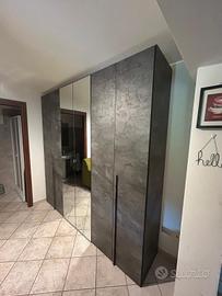armadio pari al nuovo 6 ante di cui le centrali con specchio, colore grigio antracite marmorizzato. Armadio intonso perché usato solo per custodire vestiti non usati nella quotidianità. Causa trasloco imminente lo cediamo a ottimo prezzo