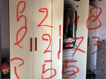 ottimo armadio 6 ante stato buono, unico problema un pannello posteriore risulta danneggiato misure 2,48x2,73x55