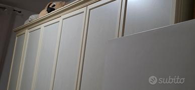 Vendo armadio 6 ante in ottime condizioni come da foto. 4 ante con ripiano nel mezzo e 2 ante alte con 2 cassetti alla base .Lungo 2,70cm alto 2,45 e profondo 58cm circa.