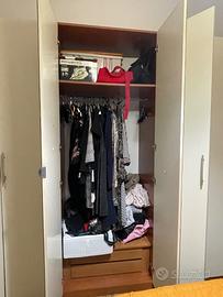 Armadio 6 ante e 6 cassetti interni, con specchio centrale. Le ante laterali hanno due appendiabiti e 2 cassetti, le ante centrali un porta abiti e due cassetti