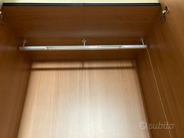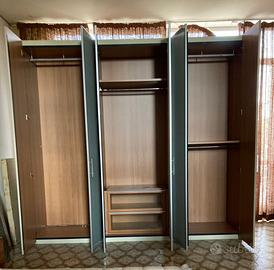 Armadio a battuta 6 ante tamburato in vetro azzurro con cassettiera