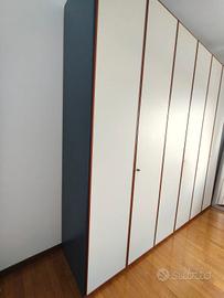 Vendo armadio 6 ante colore beige con fianchi blu, altezza 250 cm larghezza 275 cm profondità 61 cm.