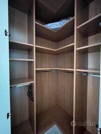 Vendo armadio angolare a 7 ante, capiente e robusto, completo di appenderie e ripiani + cassettiera.
